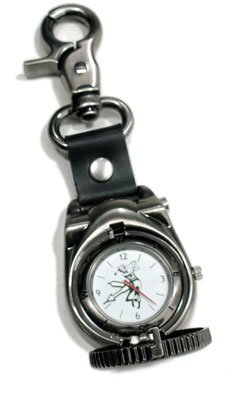 Time is on your side with this unique and distinctive watch that clips right onto your golf bag. The Ladies watch has a silhouette of a classic woman golfer on the watch face and cover. Silver finish with a black leather strap. Features flip-up metal cover. Presented in a collector gift box.